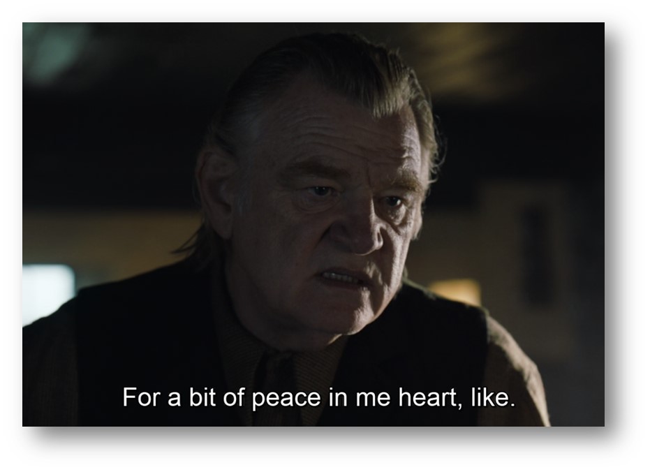 The film doesn’t tell us in the end Colm has left a legacy or not. Just like in Waiting for Godot, the issue centred on the story remains unresolved in the final scene. All we know is that he is the only one who cares about leaving a legacy. It is how he defines himself at that point in life. But for Pádraic, we can be certain it’s not Colm’s legacy he will remember, all he will remember is the day when Colm turned his face away, the day when Colm’s heart turned to stone, the day when love turned into hate…